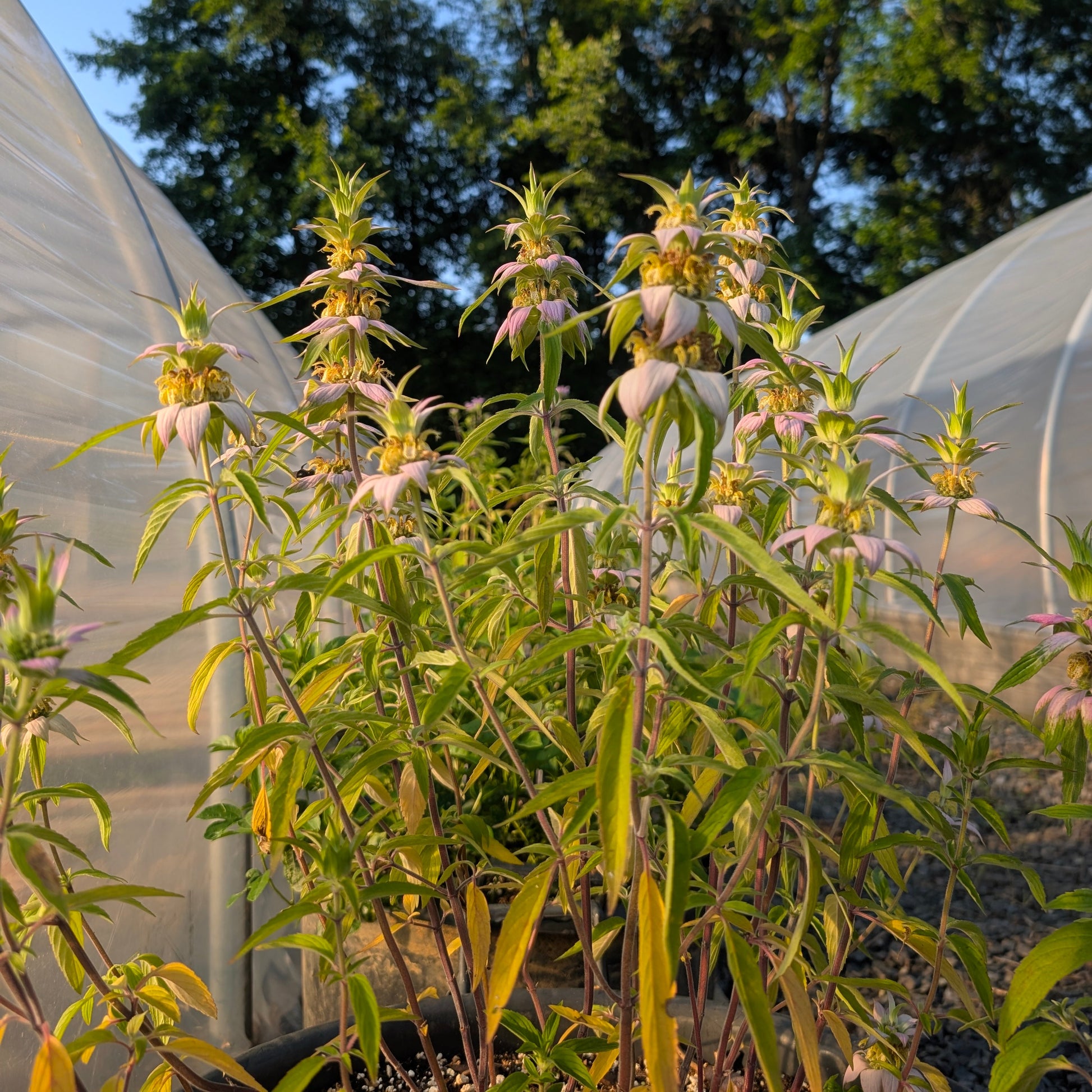 The tall spires of Spotted Bee Balm are sure to draw the eye of people and pollinator alike! Pale Pink Pagoda-like flower spikes float above a soft aromatic foliage and offer a myriad of sensory engagement and nourishment for pollinators.